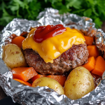 If you’re looking for a simple, mess-free, and incredibly flavorful dinner that cooks all in one packet, then Burger Dinner Foil Packets are your new go-to meal! Perfect for busy weeknights, camping trips, or backyard BBQs, these hamburger foil packets combine juicy seasoned beef patties with tender roasted vegetables—all cooked together in a single foil pouch for minimal cleanup and maximum flavor.
